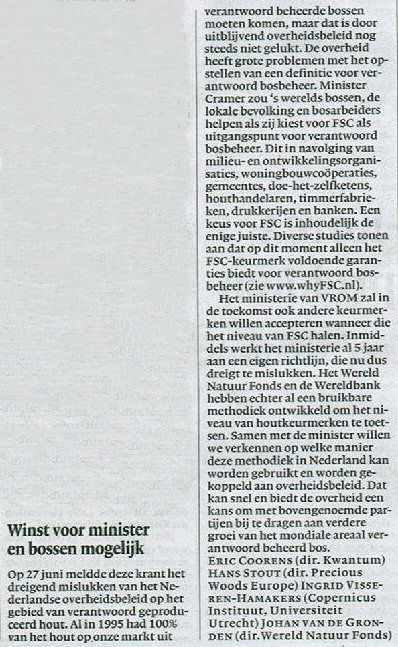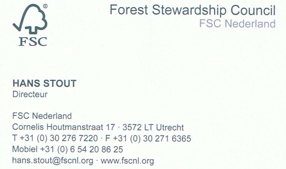 - "FSC-houthandelaar Hans Stout: 'Ik ben walgelijk praktisch'",